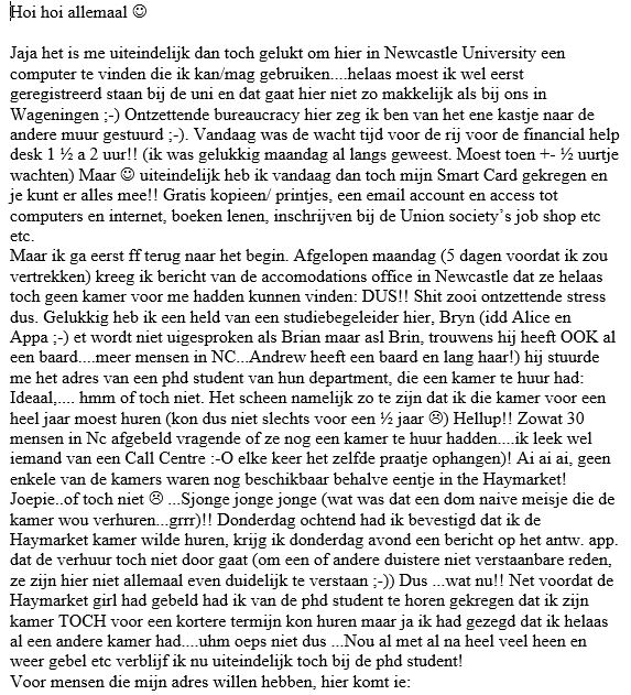 Many, many, many years ago, the move to Newcastle was my first move overseas as an adult. I had enrolled in Biogeochemistry. Being a CCK -always in search of new colours, meeting new people & discovering new places- I was excited. After arriving in Newcastle I became a member of different societies, including the Fellwalkers & the International students society. This was my first introduction to international life abroad. People from all across the globe coming together…. and I was one of them! Ten years later when I moved to Boston to live for a while, I experienced this same sense of excitement. The feeling of fitting in and being part of a community was way stronger in Boston compared to Newcastle. In Newcastle I was much younger, most international students were European (as I remember) and I wanted to fit in. It was a wonderful year though with many new experiences.
