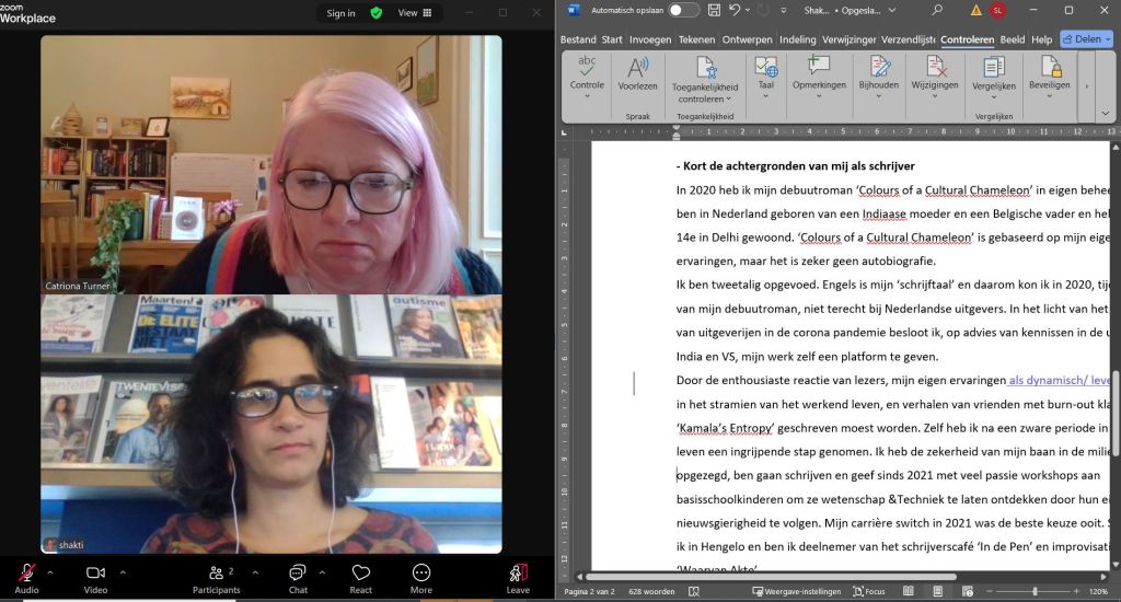 After publishing CCC I kept attending the writer meet-ups in the library, but unfortunately by then we had moved to a different city and it became tough to keep going on a regular basis. My new local library also had monthly writers’ gatherings, however with a completely different set up. The mode of communication was in Dutch as were the hand in essays and accompanying feedback. This did not cater to my needs, so I stopped attending these meet-ups. Then -during the COVID pandemic period- Janine’s events became digital and again I was able to partake and be amongst like-minded writers. During these online events I noticed that -contrary to my expectations- participants were able to form meaningful connections. I was able to relate to the others and appreciated that it was possible to create a sense of community online, not just In Real Life (IRL).